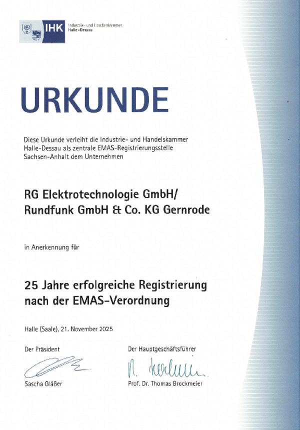 EMAS ist das weltweit anspruchsvollste Umweltmanagementsystem. Mithilfe des EU-Instruments zeigen Unternehmen und Organisationen, dass sie Verantwortung für ihr Handeln übernehmen. Dieses Engagement stärkt Image, schafft Vertrauen und stellt unser Unternehmen zukunftssicher auf. Unsere besonderen Leistungen im betrieblichen Umweltschutz dokumentieren wir jährlich anhand unserer Umwelterklärung.