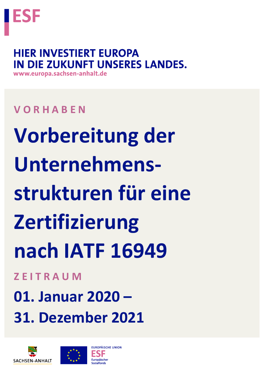 Firmengruppe / Januar 2020: Investition in die Vorbereitung einer Zertifizierung nach IATF 16949