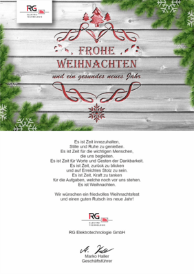 Wir wünschen Ihnen, Ihrer Familie und Ihrem Team für die kommenden Feiertage eine schöne und friedliche Zeit sowie einen guten Start in das Jahr 2025.